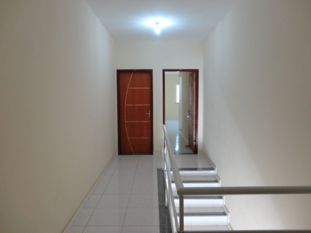 Casa com dois dormitórios, sala, cozinha, banheiro, área de serviço, segundo piso.